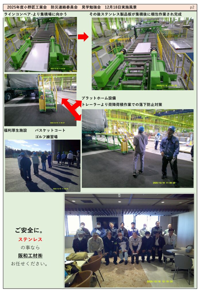 防災連絡委員会の見学勉強会 阪和工材株式会社小野工場を訪問